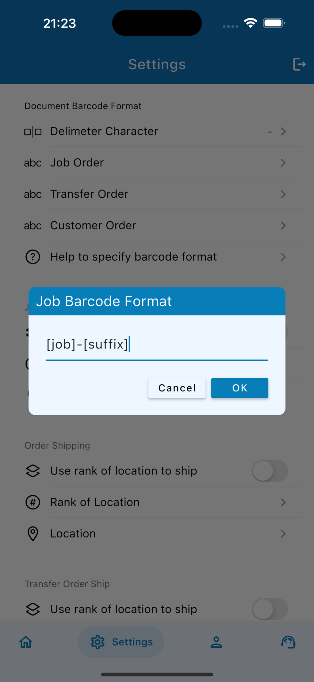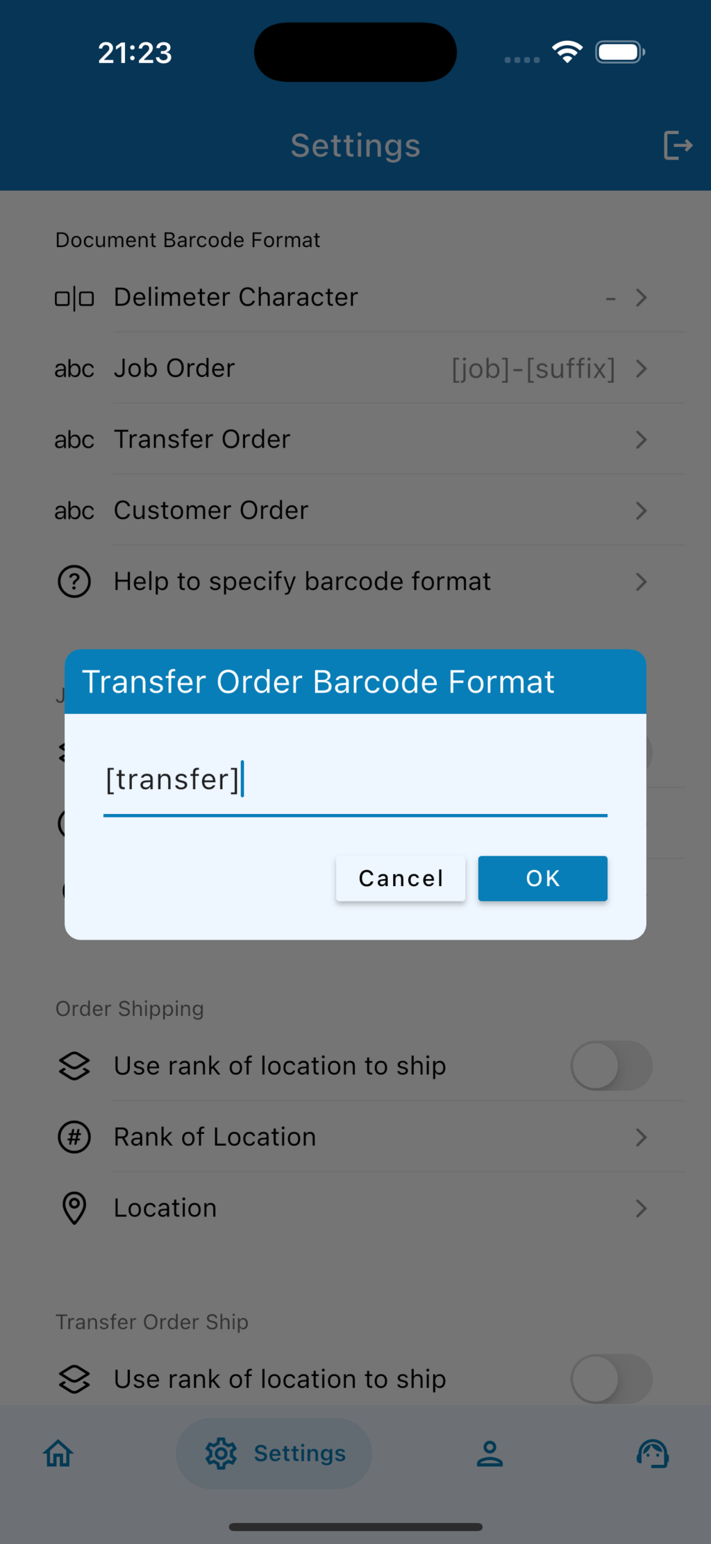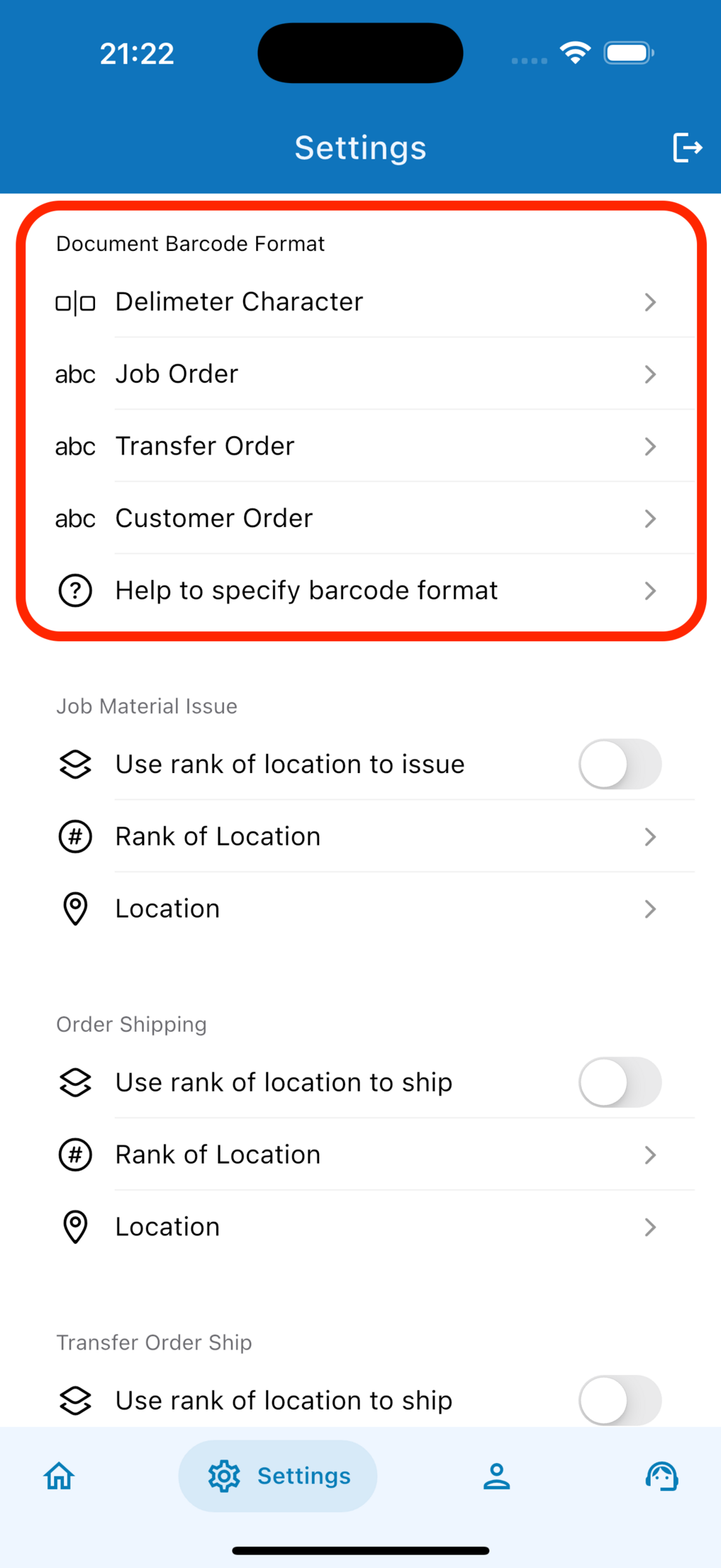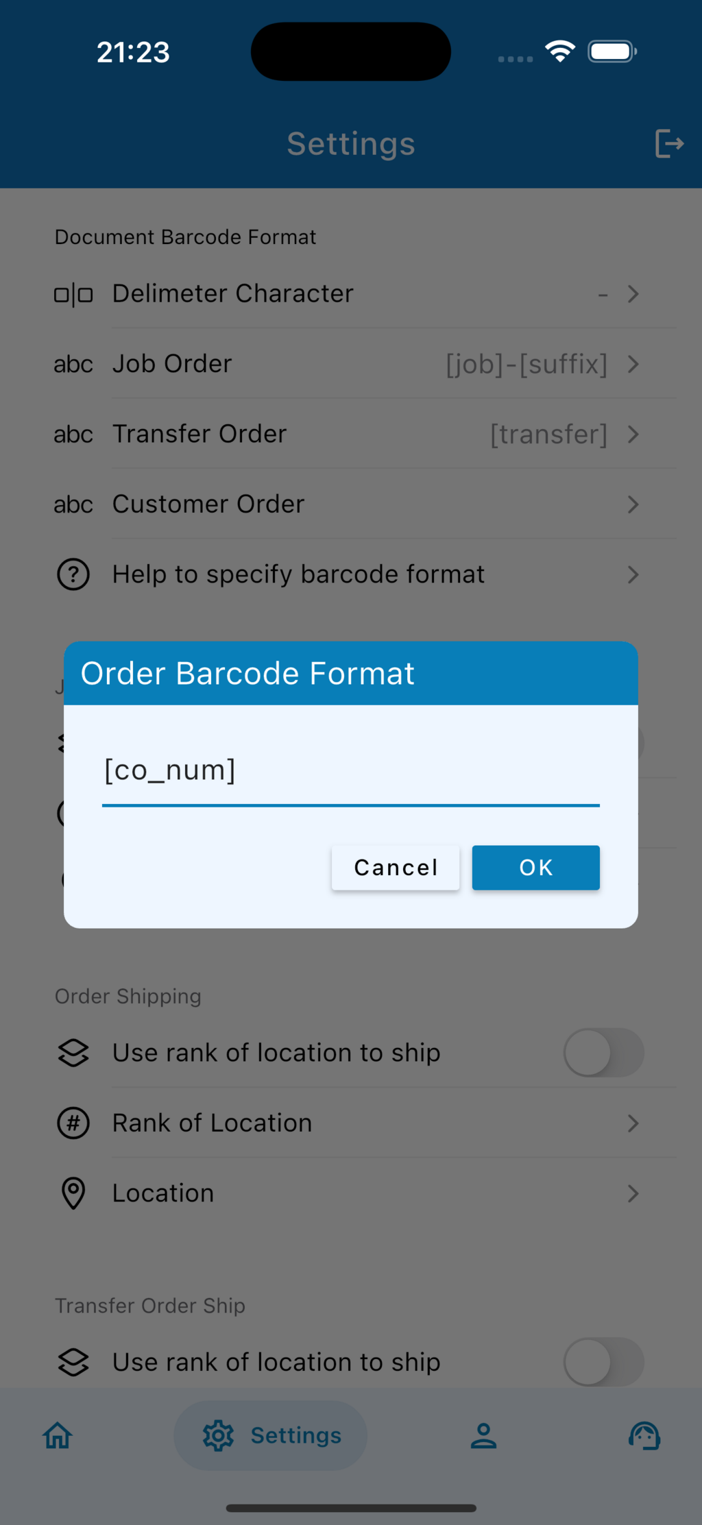ท่านสามารถตั้งค่าได้ที่เมนู Settings > Document Barcode Format