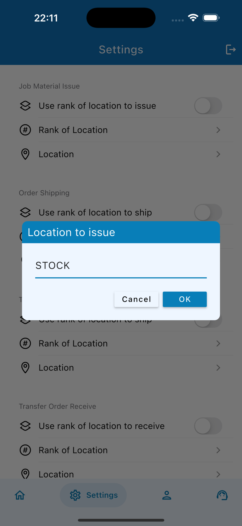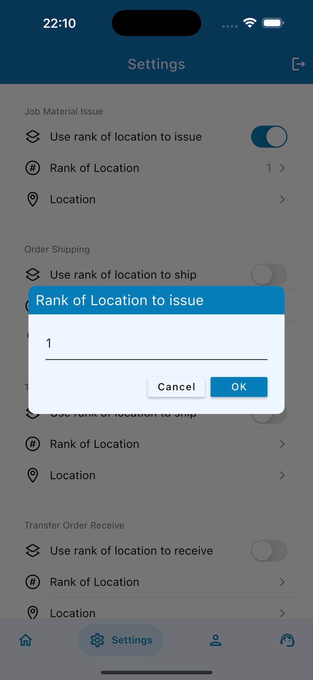 - Use rank of location to issue: สวิตช์สำหรับเปิด/ปิดการใช้ Rank ในการส่งของ