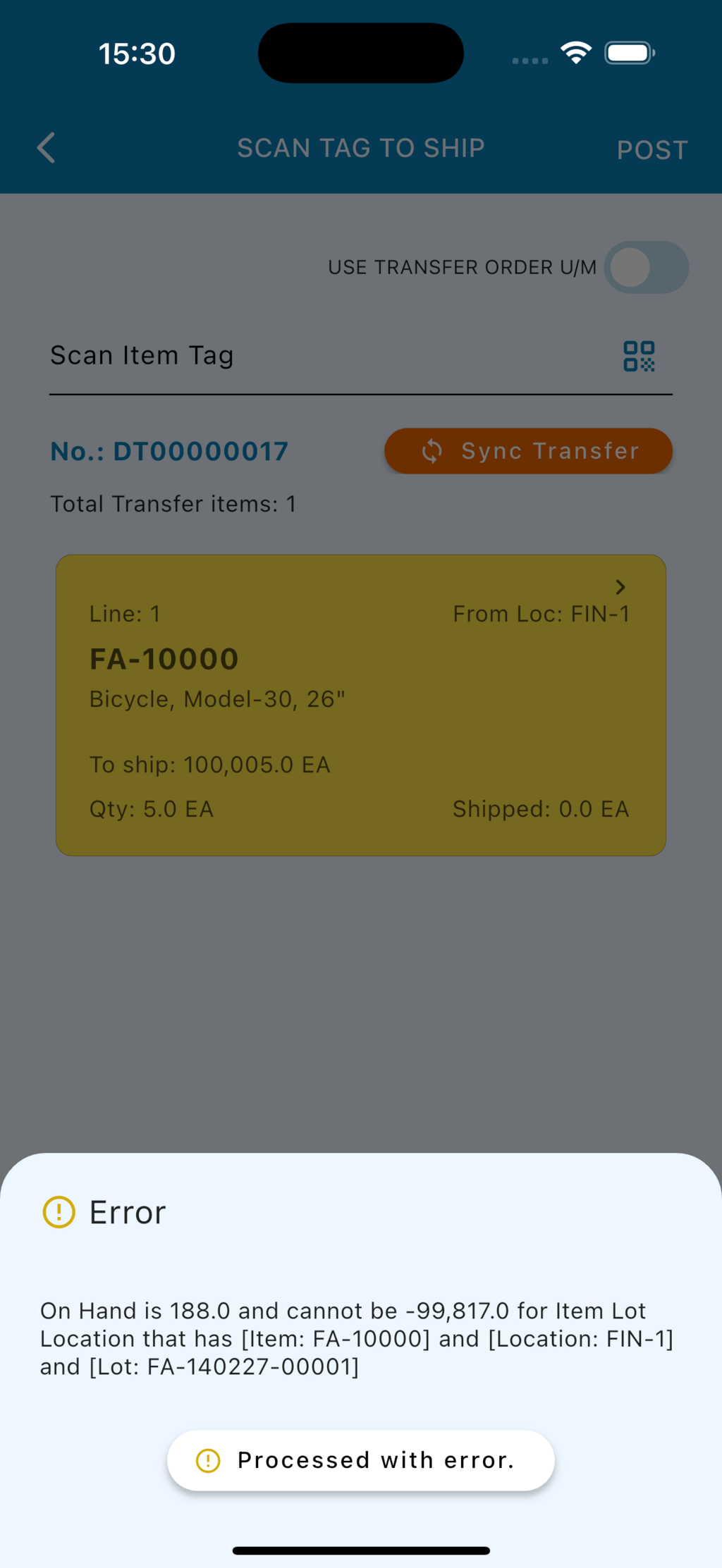โมดูล Transfer Order - Ship ช่วยให้คุณสามารถจัดส่งสินค้าตามใบสั่งโอนย้าย (Transfer Order) ได้อย่างรวดเร็วและแม่นยำ โดยเชื่อมต่อการทำธุรกรรมเข้ากับ SyteLine ERP ของคุณแบบ Real-Time