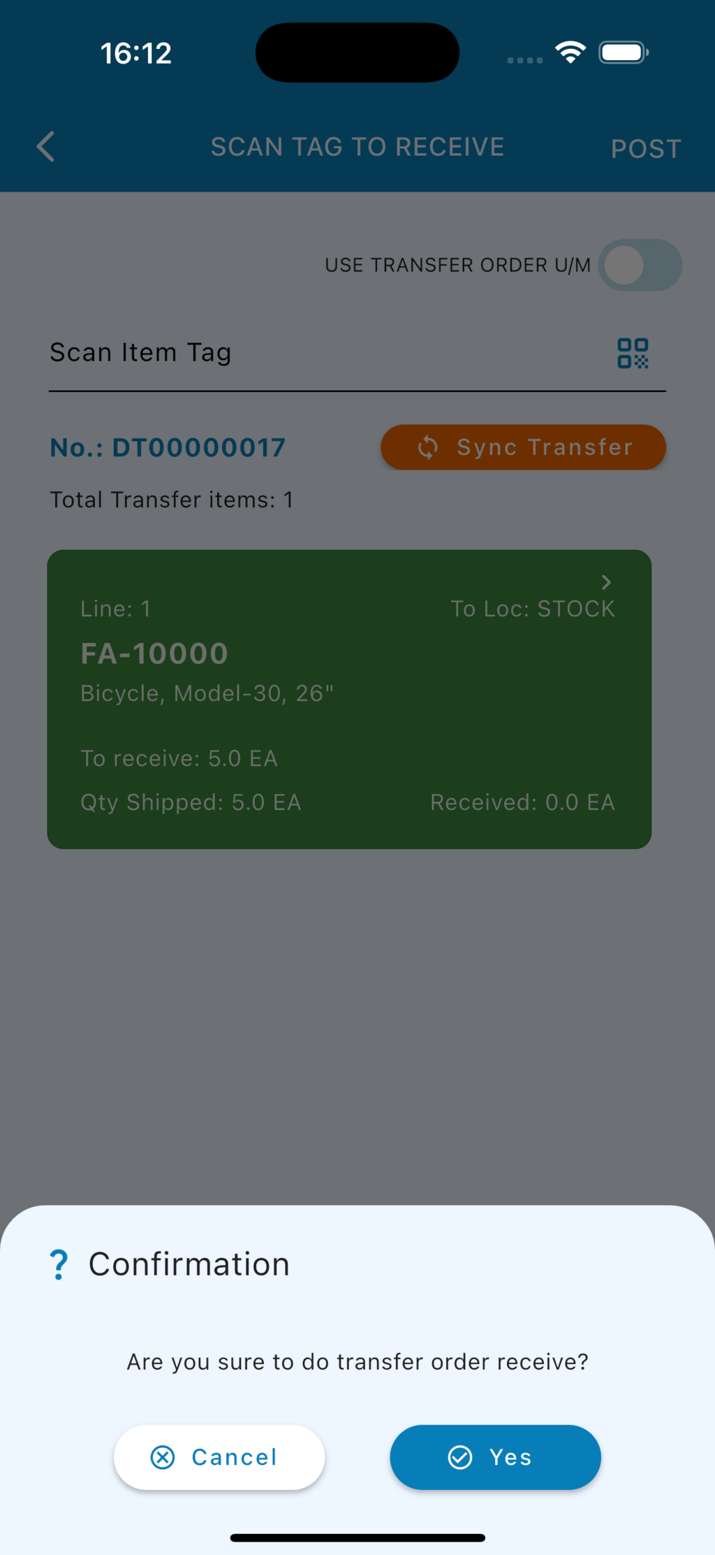 เมื่อสแกนสินค้าครบถ้วนและตรวจสอบความถูกต้องแล้ว ให้ทำการยืนยันเพื่อบันทึกข้อมูลเข้าระบบ